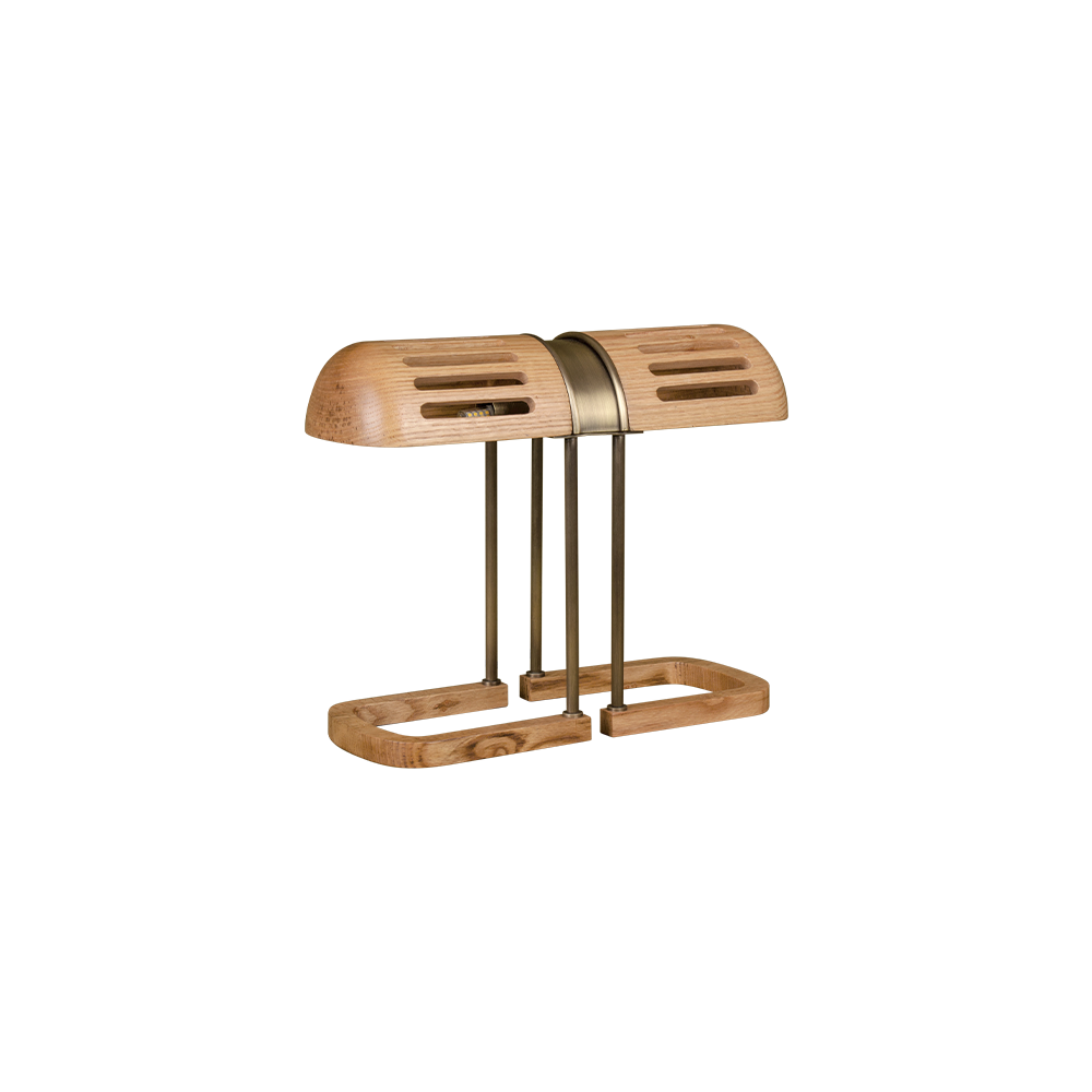 Materials -Structure: aged brushed brass and natural oak wood; Details: aged brushed brass.