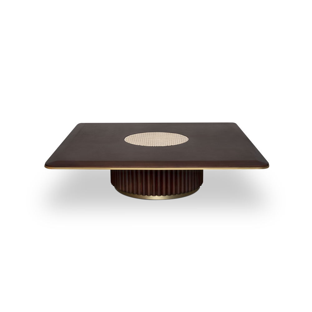 Delicately handcrafted in walnut wood, featuring brushed brass and rattan details, the Matthew Center Table will have the power to personalize the living space. Subtle and classic, this wooden center table was designed to meet to be an unmissable piece in the room.
