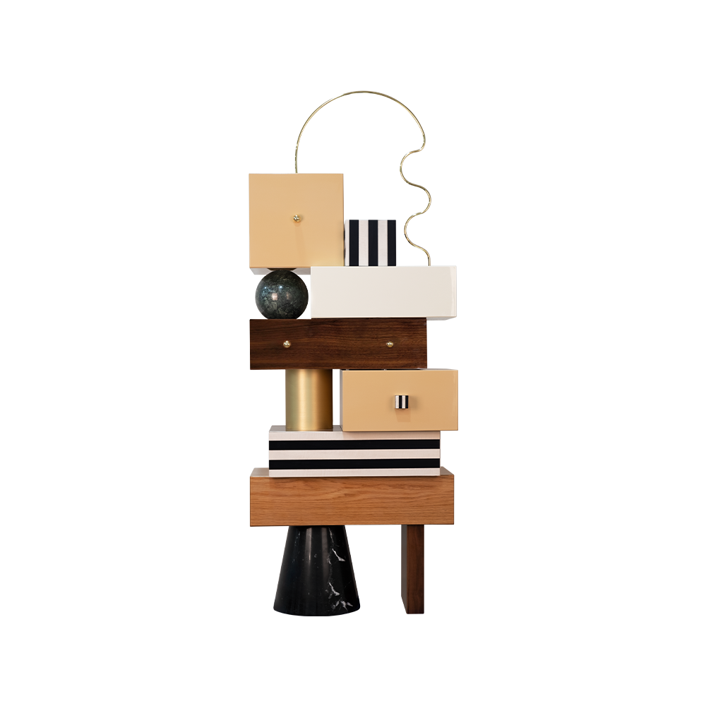 Known for its bright and bold furniture design style, Memphis keeps inspired artists and becomes a trend in interiors and furniture. Tributing Ettore Sottsass, the rule-breaking Malabar creatives designed this versatile piece of art.